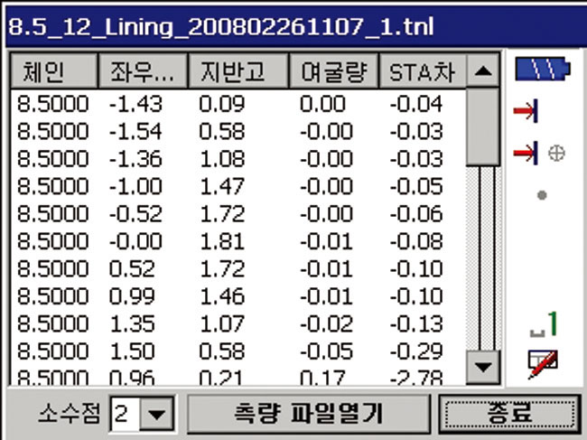 Total Station¸¸À¸·Î ½Ç½Ã°£ ÅͳΠ³»°ø º¯À§ ¹× ¿©±¼·®, °ø»ç ¹× °èÃø°ü¸® µîÀÇ È®ÀÎÃø·®ÀÌ °¡´ÉÇÕ´Ï´Ù.